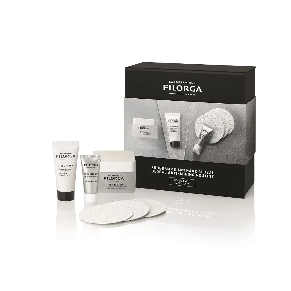 Le Programme Anti-Âge Global de Filorga est un coffret complet regroupant les soins incontournables de la marque pour une routine visage anti-âge hautement efficace, inspirée de la médecine esthétique. Il cible tous les signes du vieillissement cutané : rides, perte de fermeté, manque d’éclat, relâchement.