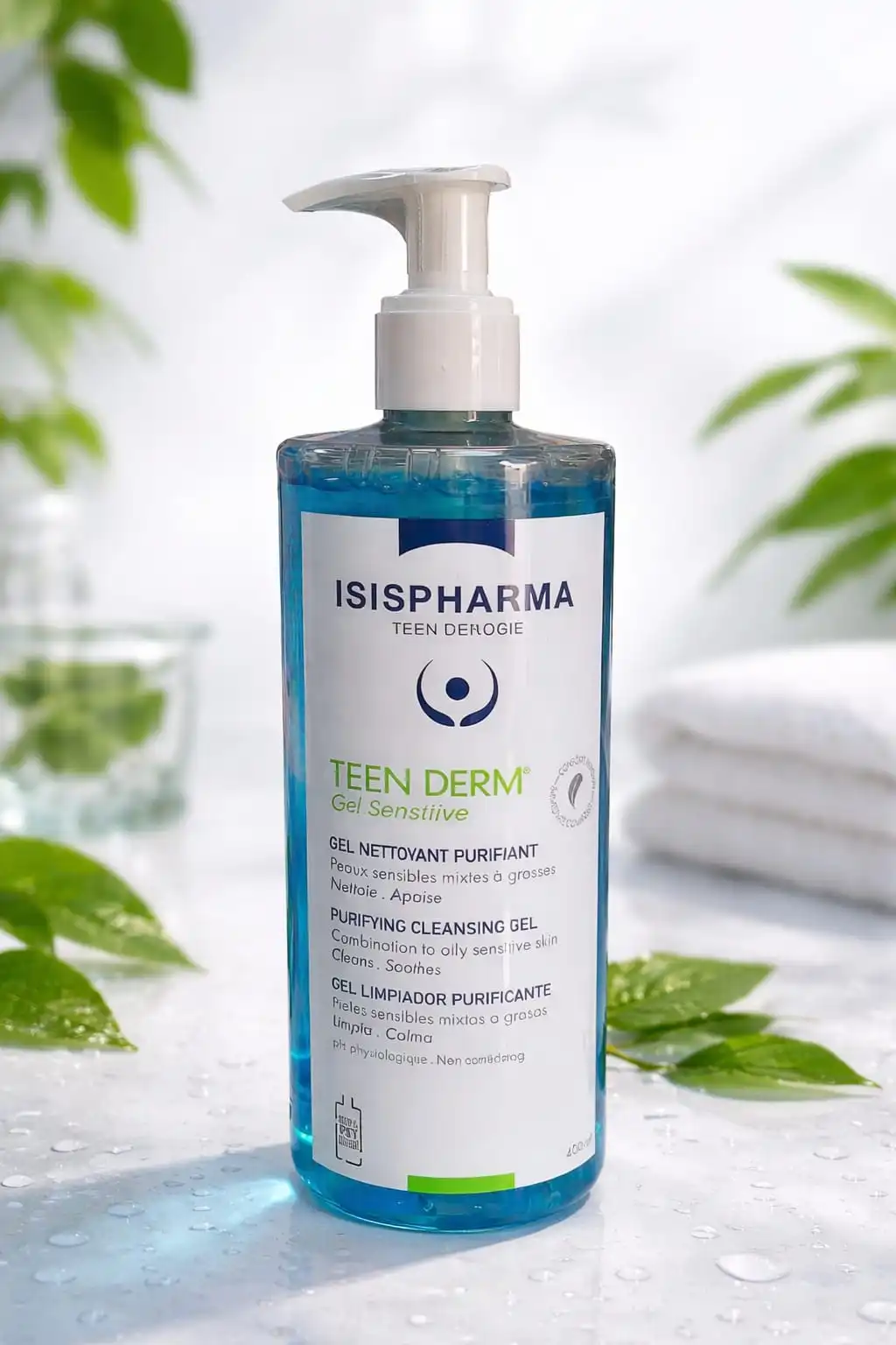 Le Isispharma Teen Derm Sensitive est recommande par les dermatologues pour les peaux reactives sujettes aux rougeurs et a l acne. Sa texture gel legere rince facilement et ne laisse aucun film gras.